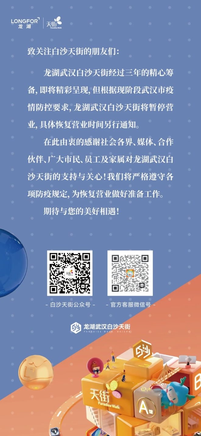聯(lián)商快訊:10月27日,龍湖武漢白沙天街發(fā)布了暫停營業(yè)公告。