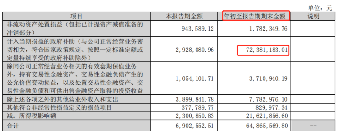 2018-2021年,公司計入當期損益的政府補助分別為5333.14萬元、2838.39萬元、4827.88萬元、9042.01萬元,分別占當期凈利潤的17.55%、11.89%、16.02%、21.99%。