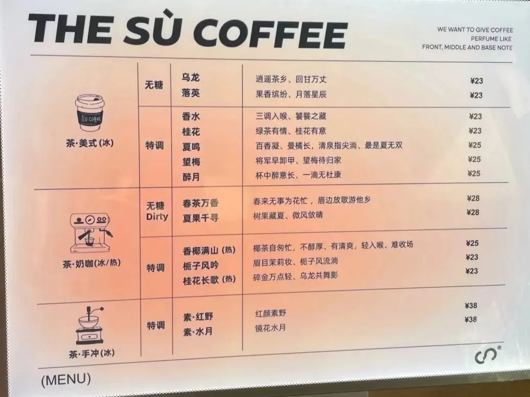 還有許多茶咖專(zhuān)門(mén)店,在西安,素咖啡·茶咖的菜單分為茶·美式、茶·奶咖、茶·手沖三大類(lèi),價(jià)格多在23~28元,均價(jià)25元。