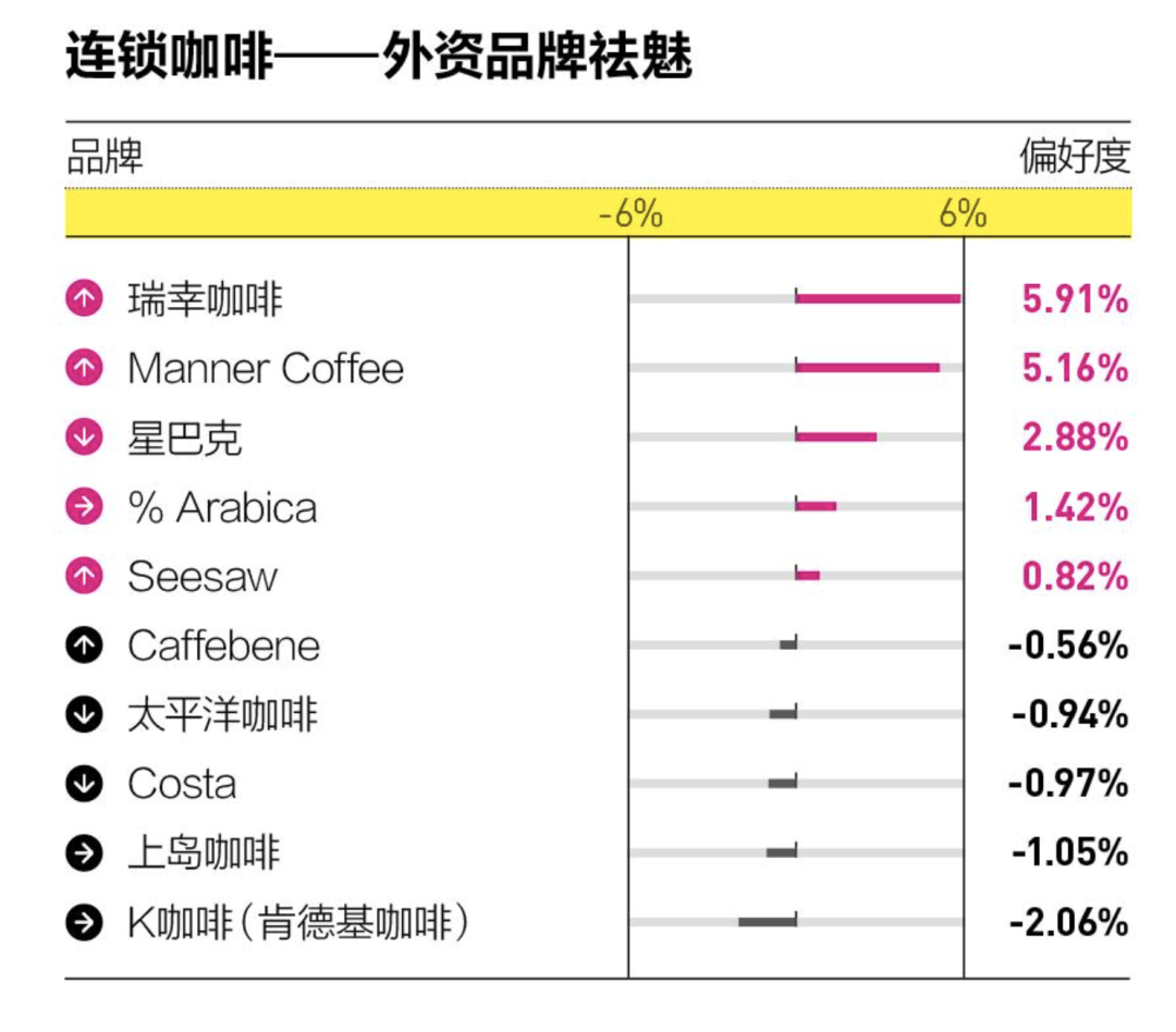 “金字招牌”公司人品牌偏好度調(diào)查連鎖咖啡類目 | 圖源第一財(cái)經(jīng)