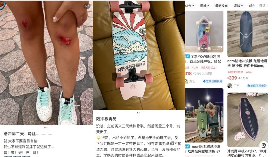 盡管不少人是越挫越勇,為了享受“風一般的自由”而繼續(xù)陸沖,但也有很多人在看到風險性后入坑即退坑,稱“剛入手一個板子的我決定退了”“一小時前被種草,草都種成樹了,看完小紅書上的各種骨折筆記,根都拔了”“刷到的上一篇筆記是陸沖高手炫技,下一篇就是骨裂,種草即勸退”……