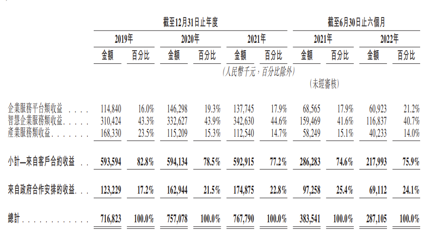招股書顯示,在智慧企業(yè)服務(wù)中,工商財稅服務(wù)和知識產(chǎn)權(quán)服務(wù)是兩大支柱業(yè)務(wù),占到八成以上。換算之后,二者占到公司營收的四成,是最大的兩項業(yè)務(wù)。通俗來說,就是代理記賬和商標(biāo)代理,服務(wù)主體以中小企業(yè)為主。