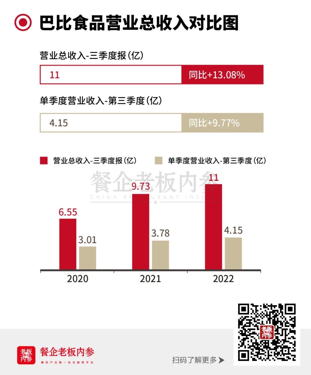 10月27日晚間,巴比食品發(fā)布2022年第三季度報(bào)告。公告顯示,2022年Q3營(yíng)收增長(zhǎng)9.77%至4.15億元,歸母凈利潤(rùn)增長(zhǎng)8.96%至1599.6萬(wàn)元;前三季度營(yíng)收增長(zhǎng)13.08%至11.01億元,實(shí)現(xiàn)歸母凈利潤(rùn)1.34億元。