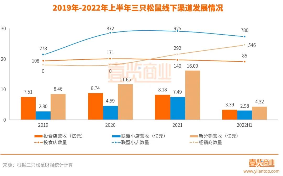 線下部分,以區(qū)域經(jīng)銷(xiāo)、平臺(tái)分銷(xiāo)、以及線下團(tuán)購(gòu)和禮品采購(gòu)業(yè)務(wù)組成的“新分銷(xiāo)”,成為了三只松鼠增速最快的分支。而對(duì)于直營(yíng)的投食店和加盟的聯(lián)盟小店,三只松鼠則選擇勇敢地告別粗放型的規(guī)模擴(kuò)張發(fā)展模式,更加重視經(jīng)營(yíng)基本面和可持續(xù)發(fā)展力。從去年下半年開(kāi)始,三只松鼠暫緩門(mén)店擴(kuò)張,主動(dòng)關(guān)停不符合長(zhǎng)期定位、業(yè)績(jī)不佳的門(mén)店,并將著力提升單店盈利能力,聚焦優(yōu)質(zhì)門(mén)店的高質(zhì)量發(fā)展。