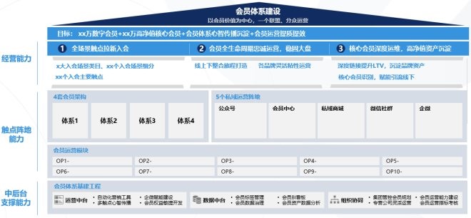 從廣義上來說,會員運營需要結(jié)合品牌的商業(yè)模式、運營、產(chǎn)品、服務(wù)、品牌、體驗設(shè)計等內(nèi)容。從落地角度來說,則需要共同構(gòu)建一個目標,例如會員數(shù)、高凈值會員、會員活躍度等,并且做好會員運營的三種能力建設(shè):