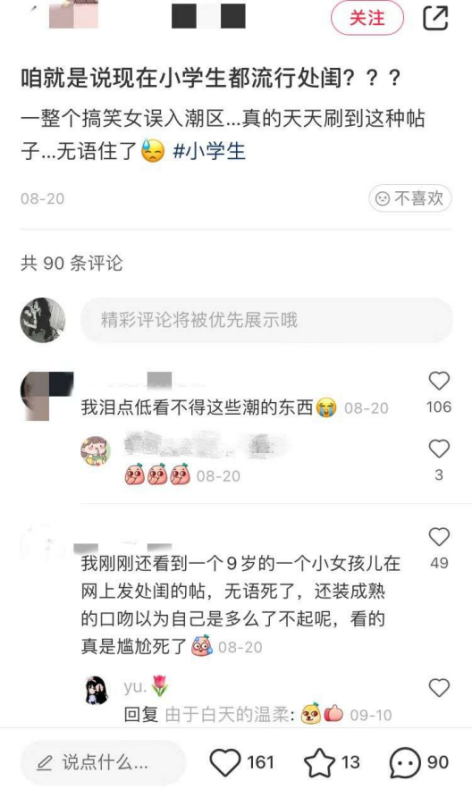 然而,本身的低幼形象與玩網(wǎng)青年想象中的成年人存在著巨大的裂隙:低質(zhì)、略顯無聊的內(nèi)容,配上“已黑化”的昵稱與低劣的審美品味,成為了主流看客眼中的笑柄。無論是B站、快手還是抖音,這些視頻下面熱評(píng)大多是嘲諷:“長大后哭著刪系列!薄斑@就是10后嗎,666。”至此,這場拙劣的模仿成為了一場徹底的鬧劇。