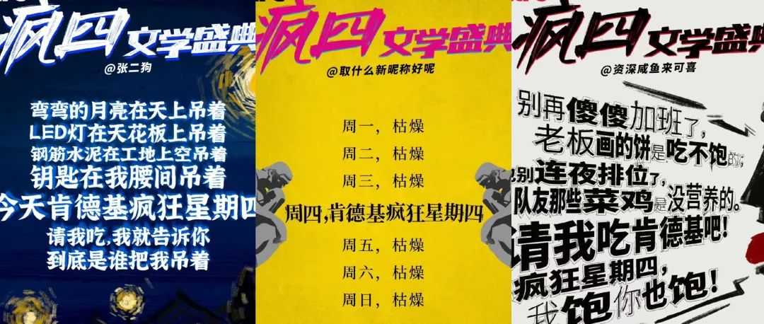 如果你還沒有聽說過“發(fā)瘋文學”,那么應該在朋友圈看到過肯德基“瘋狂星期四”。