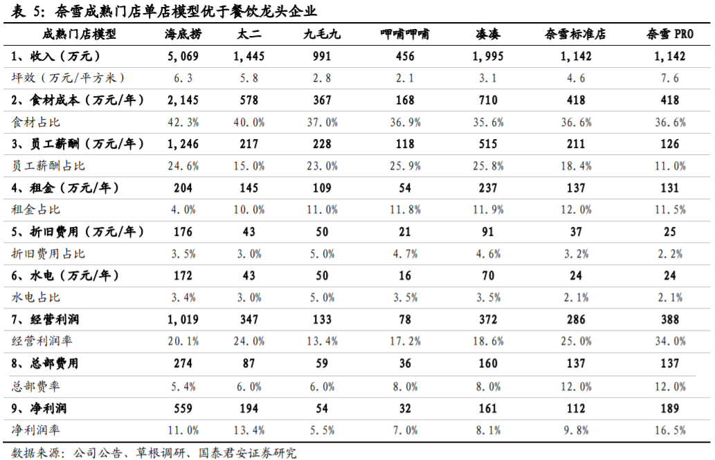 從“大店”走到“小店”,PRO店似乎幫助奈雪找到了“增效和增收”的密碼。據國泰君安調研顯示,奈雪標準店和PRO店的坪效分別為4.6萬元/坪和7.6萬元/坪;凈利率分別為 9.8%和16.5%,PRO 店的凈利率明顯更高。