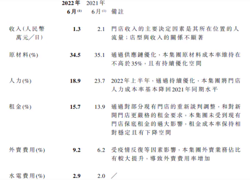 從奈雪2022上半年的單店數據來看,材料、租金、人力成本仍是大頭,其中,租金成本的占比較去年同期更是進一步提高,三塊成本加起來,占了門店收入的近7成。
