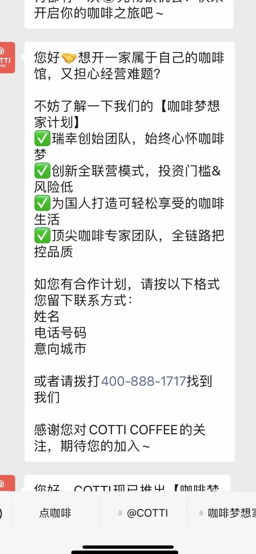 但其實,關(guān)于庫迪的產(chǎn)品、單店模型、盈利模式人們大多并不關(guān)心,大家熱議的話題始終圍繞著——庫迪咖啡會走“全聯(lián)營模式”。庫迪咖啡在公眾號里稱其“投資門檻&風險低”。
