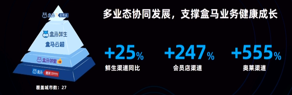 于是,盒馬調(diào)整了業(yè)務(wù)重心,確立業(yè)務(wù)發(fā)展的“三駕馬車”:盒馬鮮生、盒馬X會(huì)員店和盒馬奧萊店。