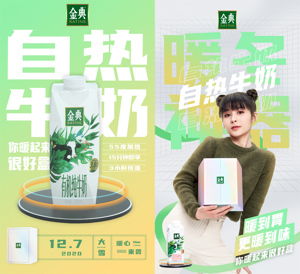 早在2020年冬季,金典就通過采用無線熱充系統(tǒng)模式,推出了一款可以“自熱”的牛奶禮盒,從而實(shí)現(xiàn)55度加熱,讓牛奶以更佳的溫度入口。此外,該款牛奶還擁有“15分鐘即享、3小時恒溫”等優(yōu)勢,極大地滿足了消費(fèi)者隨時隨地喝上熱飲的需求。元?dú)馍滞瞥龅脑獨(dú)馍秩椴鑝ini裝,也對包裝進(jìn)行了加厚及多重加強(qiáng)筋的處理,提升了瓶身耐熱性和穩(wěn)定性,進(jìn)一步滿足飲品加熱的需求。