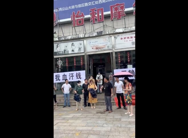 今年7月,微信公眾號“大信陽網(wǎng)”發(fā)布的“信陽怡和摩爾城出現(xiàn)白色條幅”一文的視頻中,怡和摩爾城門口橫掛著“怡和還我血汗錢、無賴怡和不講信任”的橫幅。