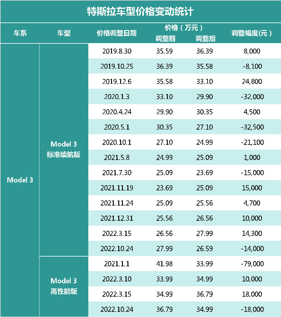 事實(shí)上回顧特斯拉的價(jià)格歷史,降價(jià)一直是它一種有效的促銷手段,除了遭受供應(yīng)鏈壓力不得不漲價(jià)的情況,尤其在Model 3和Model Y在國(guó)內(nèi)實(shí)現(xiàn)規(guī);慨a(chǎn)之后。