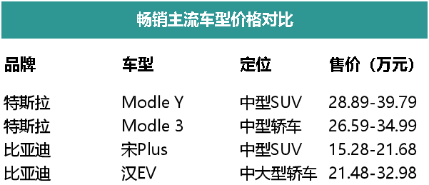 以兩家最暢銷的兩款車型為例,很明顯已經(jīng)爆單并被官網(wǎng)下架的比亞迪宋Plus定價(jià)與特斯拉完全不在一個(gè)價(jià)格區(qū)間,而漢EV低配款歸屬20-30萬(wàn)區(qū)間,整體比特斯拉Modle 3低2-5萬(wàn)元。