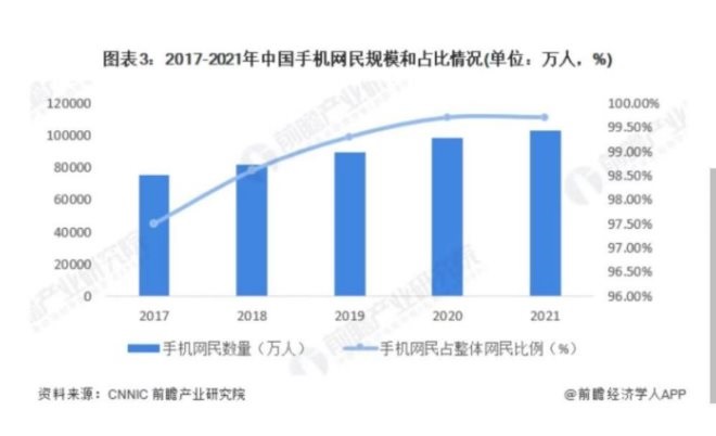 據(jù)相關(guān)數(shù)據(jù)顯示:截至2021年12月,我國網(wǎng)民規(guī)模為10.32億,互聯(lián)網(wǎng)普及率達(dá)73.0%;其中我國網(wǎng)民使用手機(jī)上網(wǎng)的比例最高,達(dá)99.7%。如果再結(jié)合我國人口年齡結(jié)構(gòu)綜合分析可得出這樣一條結(jié)論: