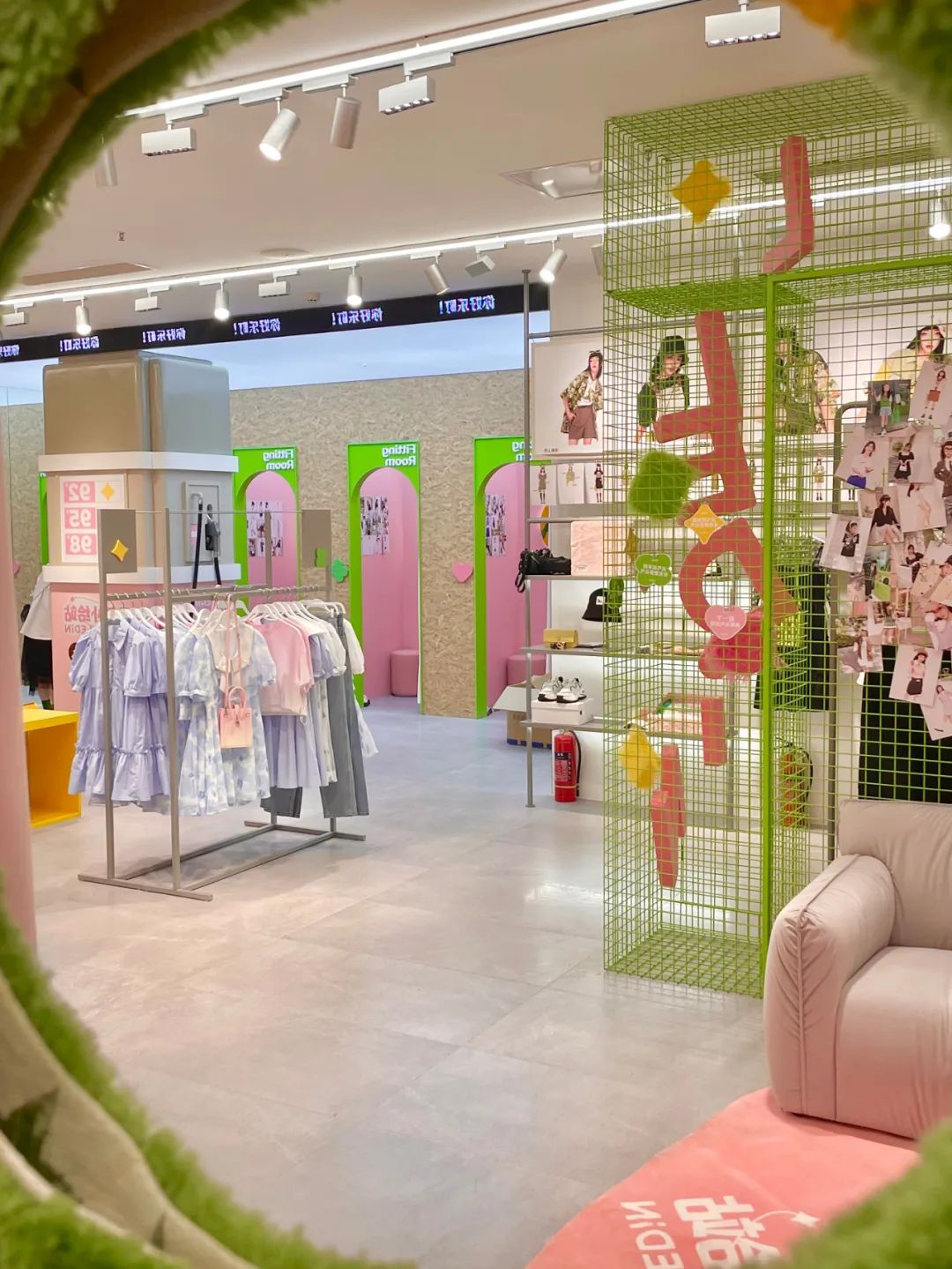 據(jù)悉,新店坐落于成都市春熙路核心地段,這是一間讓你一進(jìn)入門店就大喊一聲“wow”的大型門店,全店使用面積205平方米,整個(gè)店鋪空間以“海上春熙涌動(dòng)之意,亦有人潮熙熙”為靈感,與少女元?dú)饫砟钋擅钊诤。賓客從正門步入,水波紋樣的門頭與簡(jiǎn)潔時(shí)髦的直線條陳列流暢銜接,整體空間創(chuàng)新多元的互動(dòng)陳列裝置,歡迎賓客在此盡情體驗(yàn)打卡,探尋元?dú)飧袧M滿的樂町時(shí)髦新品。