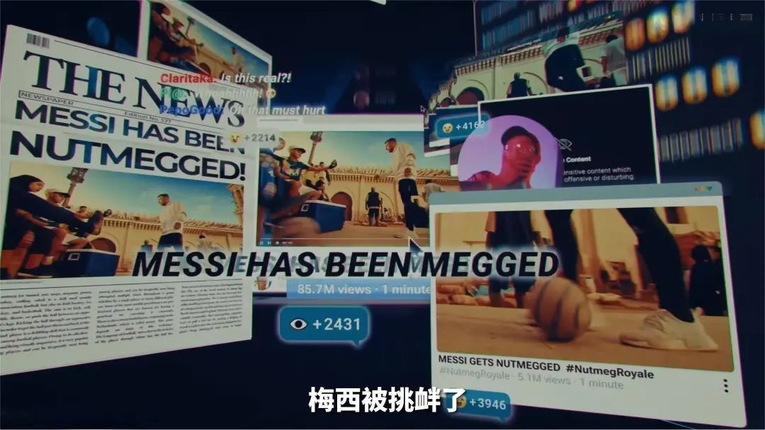 而把目光轉(zhuǎn)向海外,百事在一如既往采用其擅長的游戲化、娛樂化、快節(jié)奏風(fēng)格之外,也選擇了梅西在大街上被路人踢了“穿襠球”這個(gè)微觀的點(diǎn),開始講述整個(gè)故事。