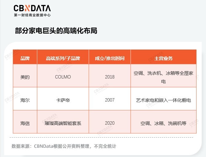 在國內(nèi)市場飽和,消費需求升級的趨勢下,向上轉(zhuǎn)型,向外擴(kuò)展,成為家電巨頭們尋找的第三條路,目前為止,美的、海爾、格力都形成了各自的“城池堡壘”,美的有收購的庫卡和高端子品牌COLMO,海爾有卡薩帝,格力則由專門的團(tuán)隊負(fù)責(zé)高端產(chǎn)品研發(fā)和運營。