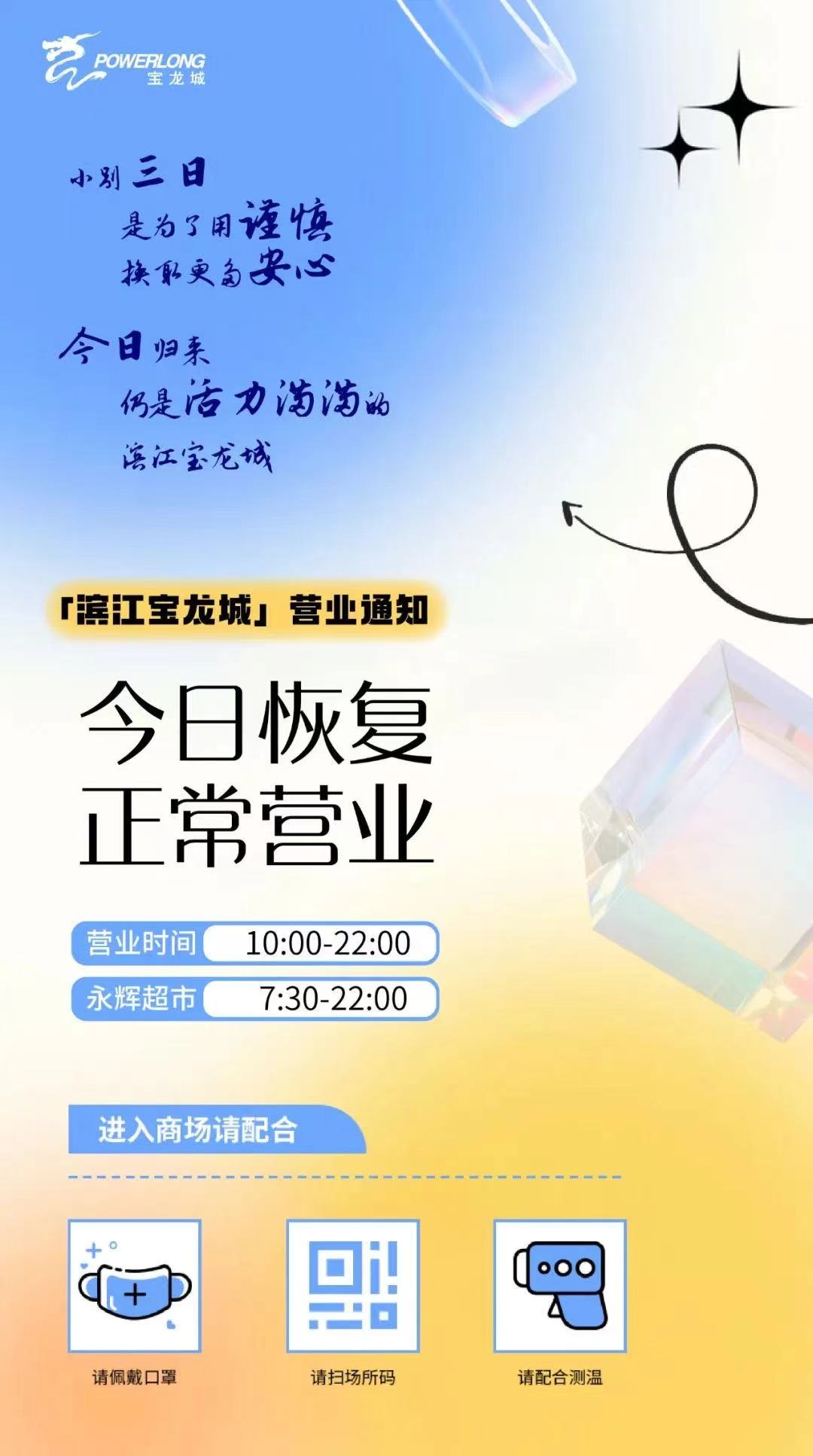 杭州濱江寶龍城11月10日起恢復(fù)營(yíng)業(yè)