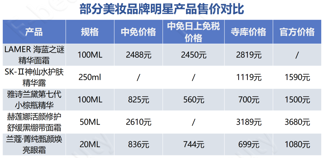 從公開價格信息對比看,寺庫平臺的大牌護膚熱門單品價格總體來說高于中免、日上免稅店的價格,并且銷量不高,消費者評價也大多停留在2020和2021年,有不少消費者表示“是正品”。