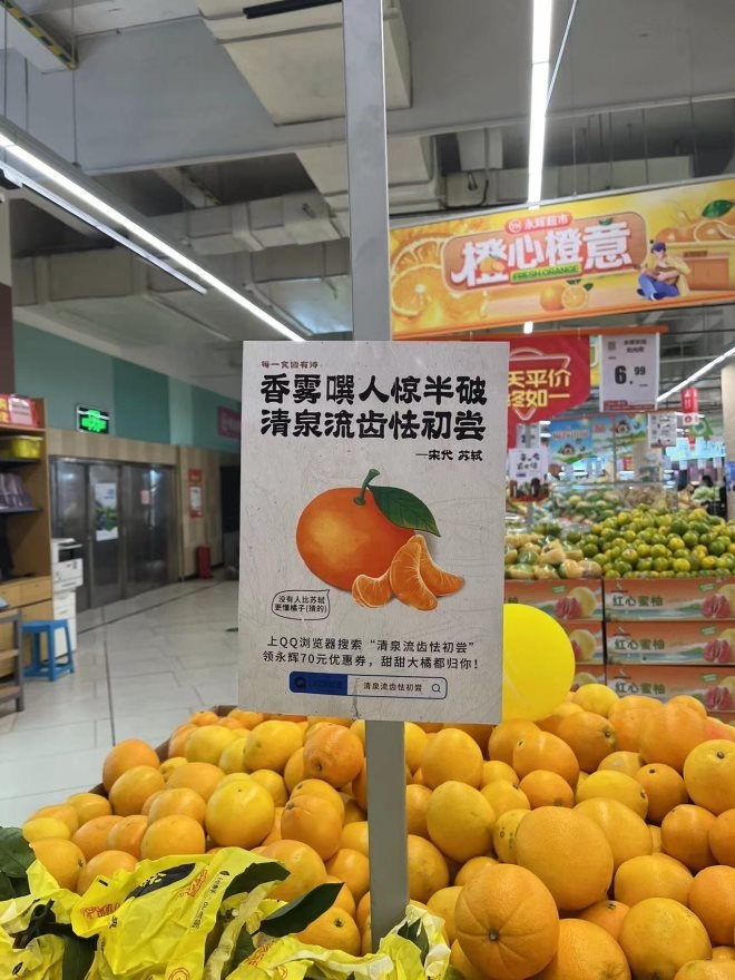 近日,上海永輝超市用與美食相關(guān)的古詩(shī)做成雙十一促銷文案,以詩(shī)詞譜寫美味與詩(shī)意生活,弘揚(yáng)傳統(tǒng)文化,吸引了眾多網(wǎng)友紛紛前來(lái)打卡。