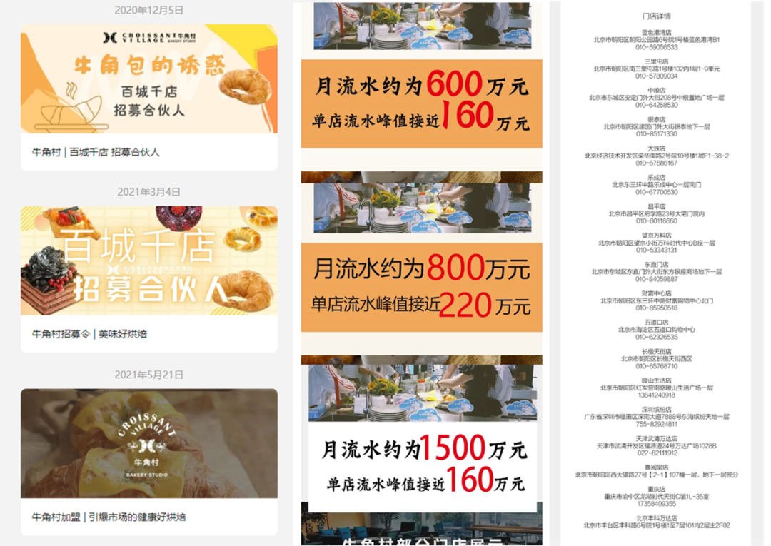 牛角村在官網(wǎng)宣稱“800多家專賣店已遍及全國,并且已經(jīng)走出國門,走向亞洲其他國家”,經(jīng)監(jiān)管部門核查,牛角村最多時(shí)僅擁有28家專賣店,其中直營店16家,加盟店12家。目前營業(yè)中的直營店6家,加盟店4家,其他店均已關(guān)閉。