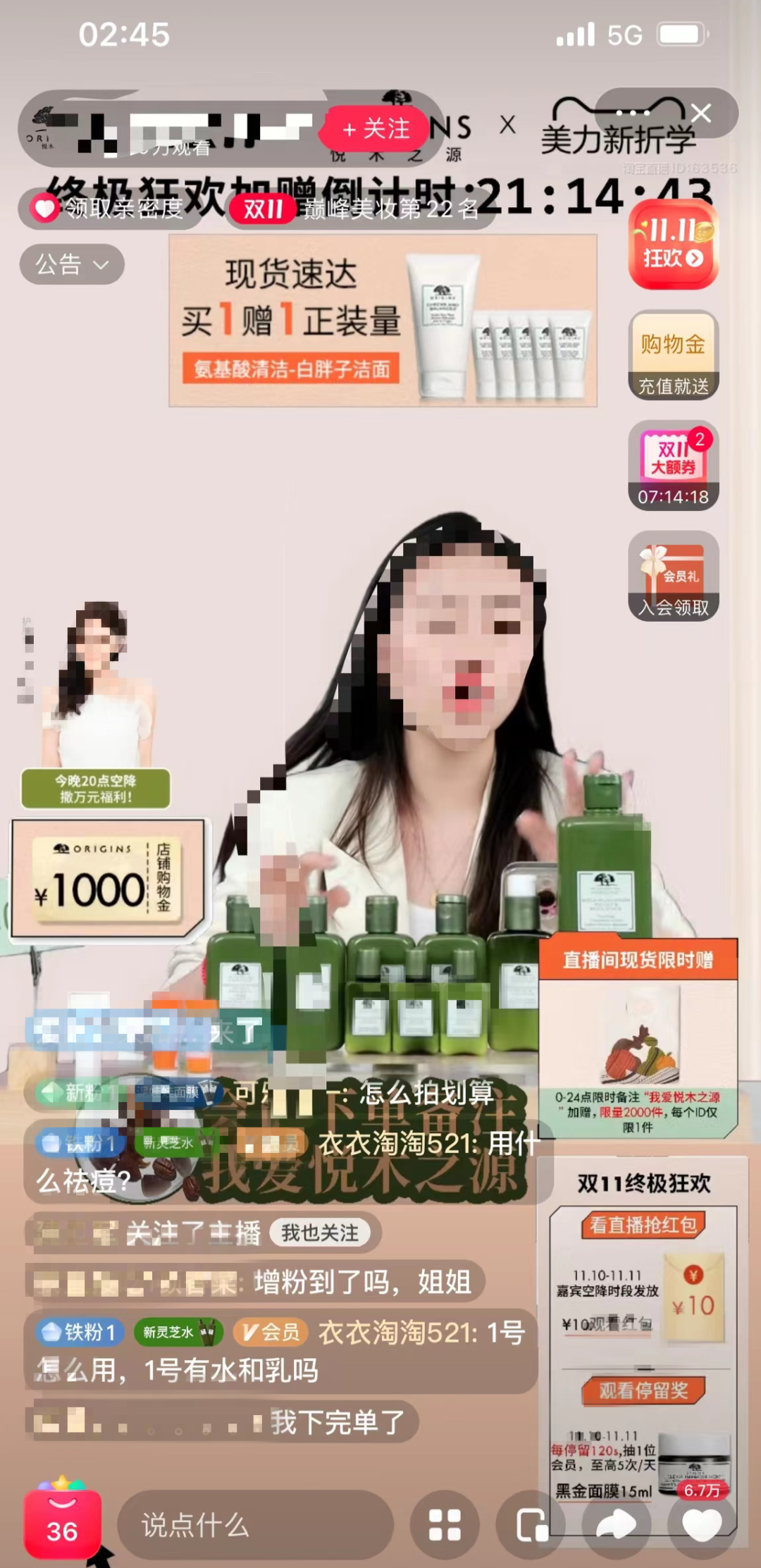 兩年“雙11”都在雅詩蘭黛旗下一個品牌直播間度過,蕾蕾卻發(fā)現(xiàn),今年“雙11”期間,淘寶、京東直播間的場觀、實時在線人數(shù)也比不上去年“雙11”,“今年看的人還蠻少的,也蠻冷清的,評論、互動都少了。”