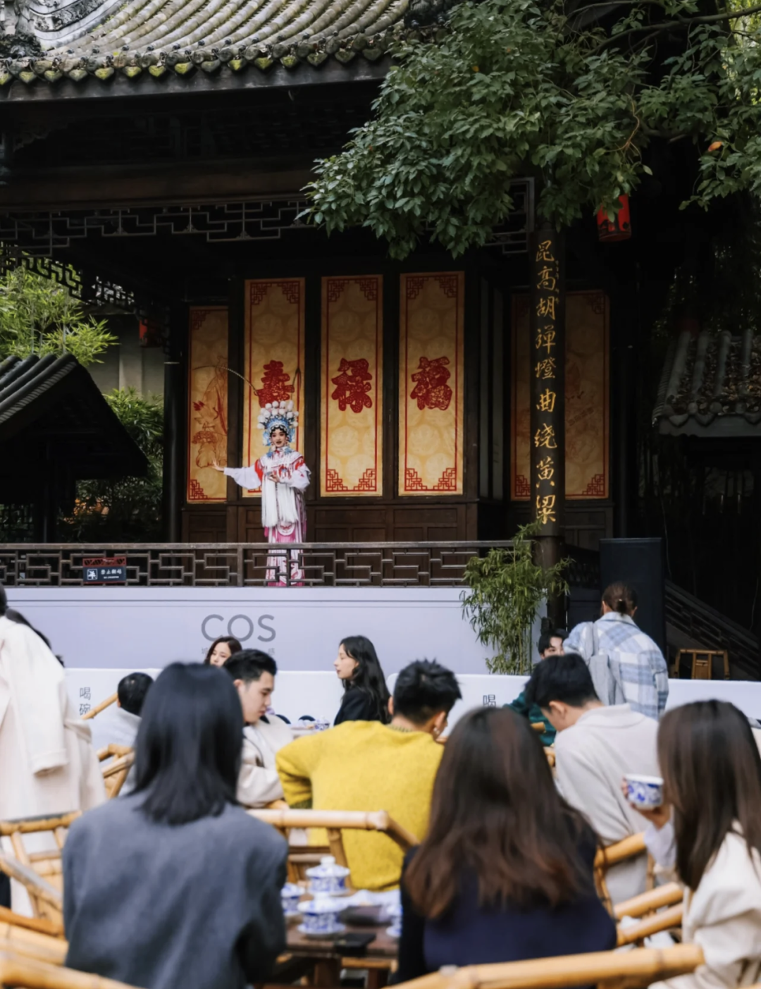 11月10日至11月13日,H&M集團(tuán)旗下高端品牌COS在成都鐵像寺水街的陳錦茶鋪,開展限時(shí)飲茶會(huì)快閃活動(dòng)。