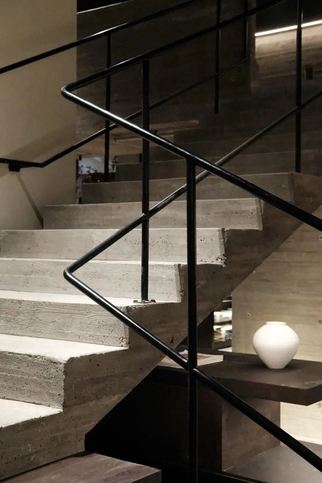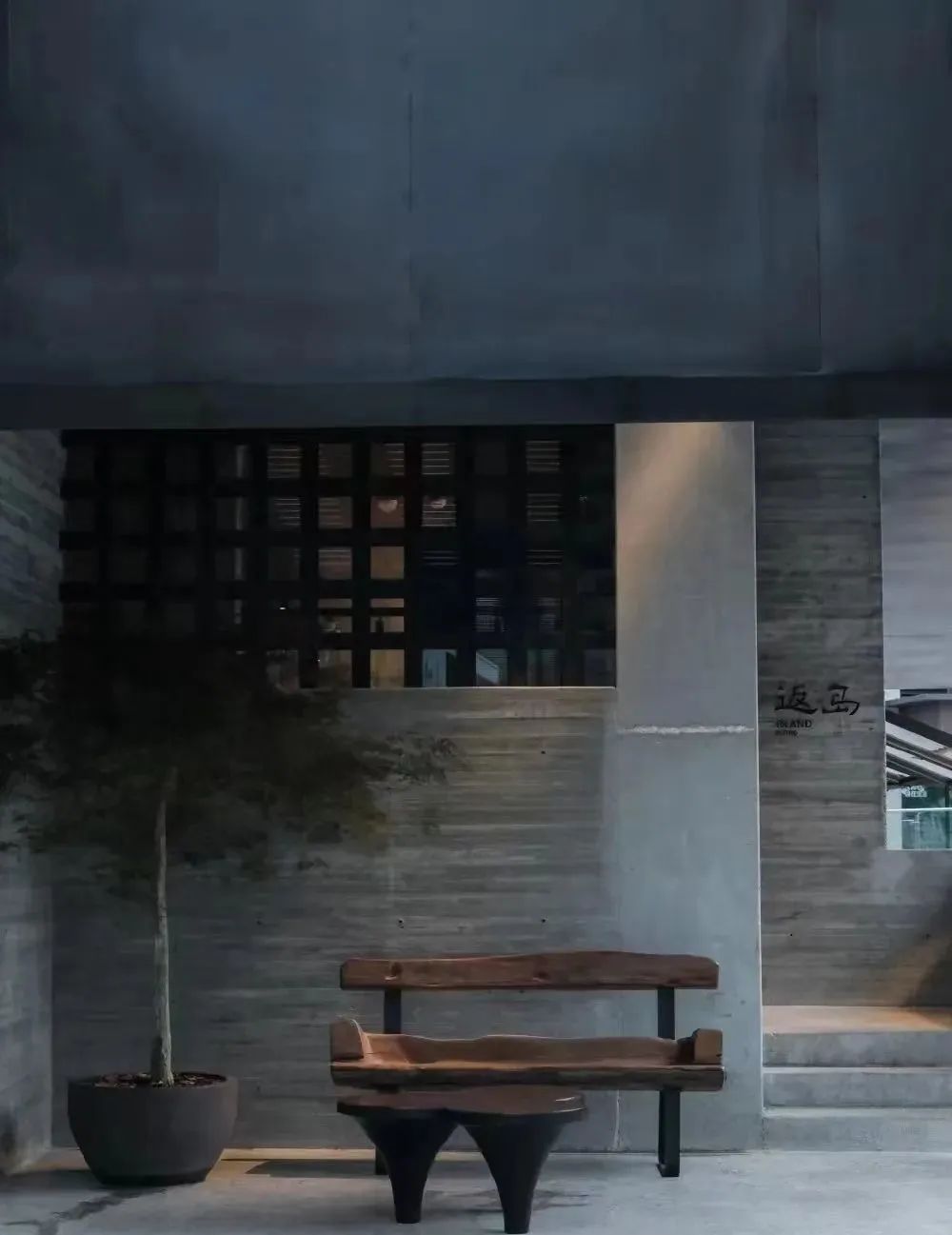 店內(nèi)設(shè)計(jì)依托麓湖氛圍,深棕色木質(zhì)和大片混凝土灰色墻體的選配,著力展示了時(shí)間的歷史感和具有自然氣韻空間的治愈感。