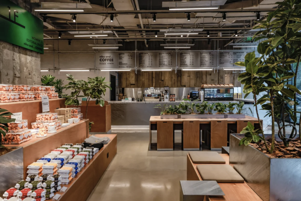 除了一樓的niko and … Coffee,三樓的niko and … BISTRO同樣為顧客預(yù)留休憩餐飲的空間,兩處均最大面積地利用落地玻璃,連接室內(nèi)觀景。