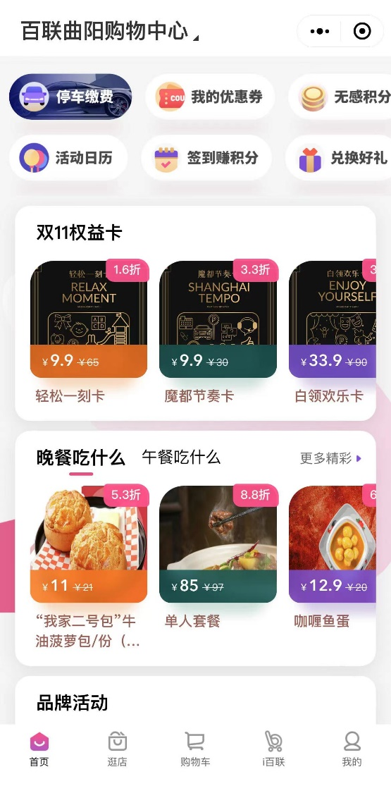 今年雙十一,百聯(lián)曲陽購物中心針對性地推出輕松一刻卡、魔都節(jié)奏卡、白領(lǐng)歡樂卡、打工人充電卡等新個性化權(quán)益卡,涵蓋電子停車券、場內(nèi)小動物互動體驗、社群小二陪伴遛娃服務(wù)、專屬存包、事先取號減少排隊時間、專屬試衣搭配、鄰劇場劇目票、飲品券、咖啡券等權(quán)益,為消費者嗨逛提供全方位暖心護(hù)航。