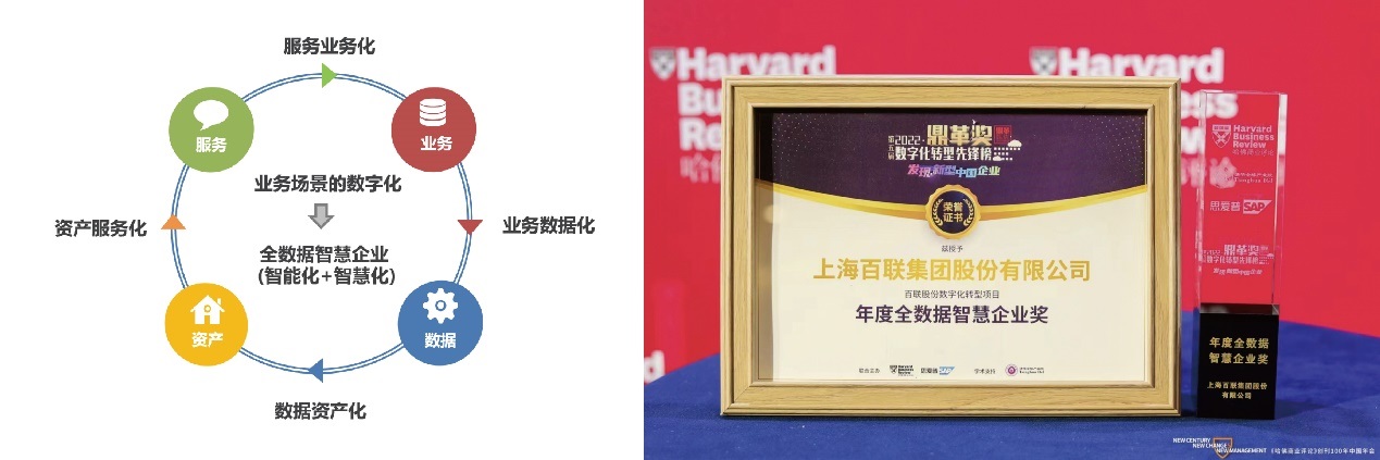 百聯(lián)股份的數(shù)字化轉(zhuǎn)型歷程為全數(shù)據(jù)智慧企業(yè)的成長提供了行業(yè)標(biāo)桿,也獲得了市場的權(quán)威認(rèn)可。近日,公司從220余家企業(yè)中脫穎而出,榮獲由《哈佛商業(yè)評論》中文版、思愛普(SAP)公司聯(lián)合主辦、清華大學(xué)全球產(chǎn)業(yè)研究院作為學(xué)術(shù)支持的2022【鼎革獎】數(shù)字化轉(zhuǎn)型先鋒榜年度全數(shù)據(jù)智慧企業(yè)獎。