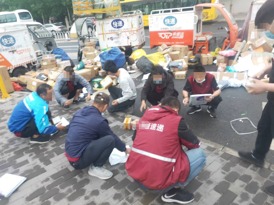 圖/臨時(shí)蹲在路邊分揀的快遞員