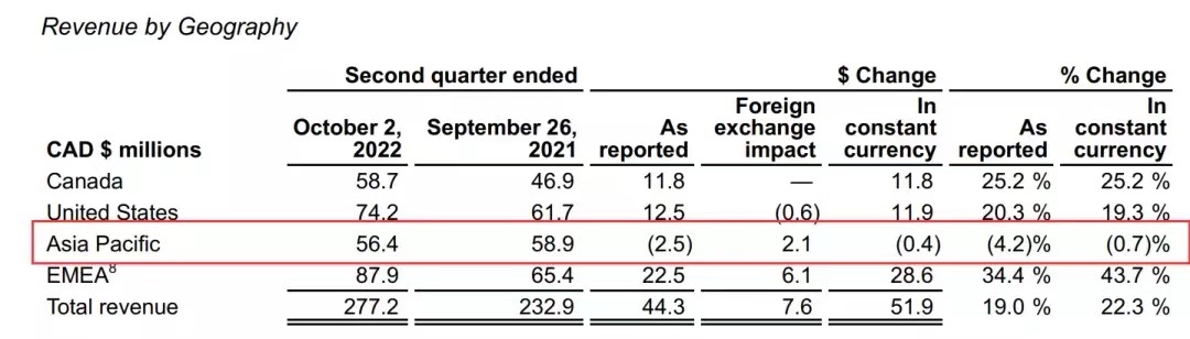 分地區(qū)看,加拿大鵝在加拿大本地、美國(guó)、歐洲、中東和非洲市場(chǎng)的營(yíng)收均保持了兩位數(shù)以上增長(zhǎng);中國(guó)所在的亞太地區(qū)有所下降,第二季度營(yíng)收5640萬(wàn)加元,同比下降4.2%。