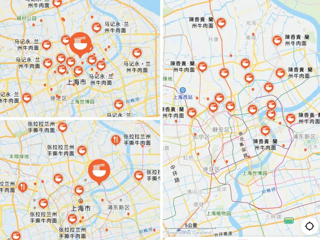 馬記永的220多家店,多集中在上海、蘇州、南京等地,陳香貴也是如此,主力區(qū)域仍是長三角和廣東省,只有60多家店的張拉拉,上海門店就有37家,已經(jīng)占了一大半了。