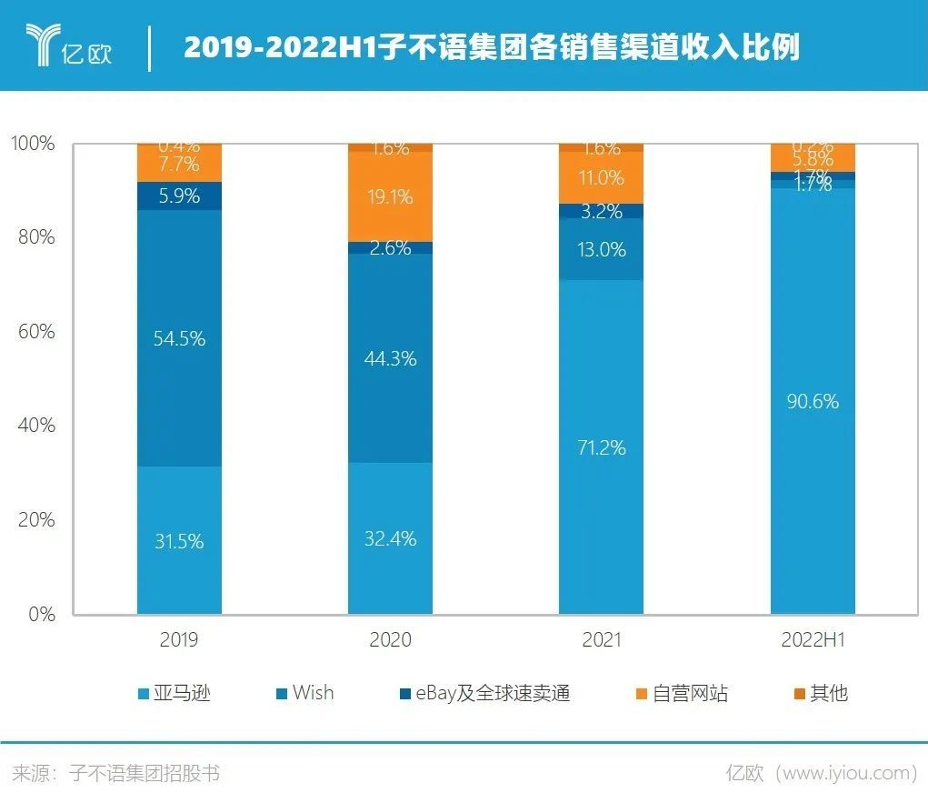 2020年之前,子不語的主要陣地在Wish,2019年和2020年,來自Wish的收入占到總營(yíng)收的54.5%和44.3%。但2020年,Wish賣家被大規(guī)模罰款,一時(shí)間平臺(tái)賣家人人自危,子不語也逐漸將陣地轉(zhuǎn)移至亞馬遜。