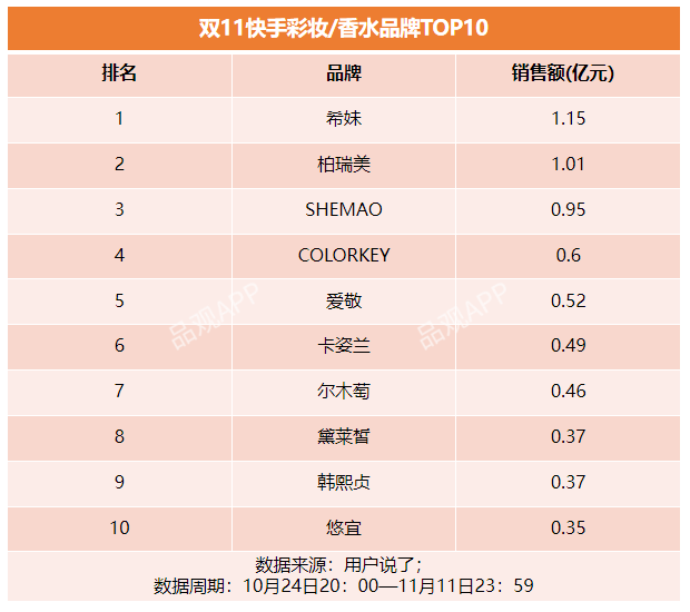 雖然前10席位被“快品牌”霸榜,但是歐詩漫、珀萊雅、谷雨均在快手發(fā)力,進入TOP20。