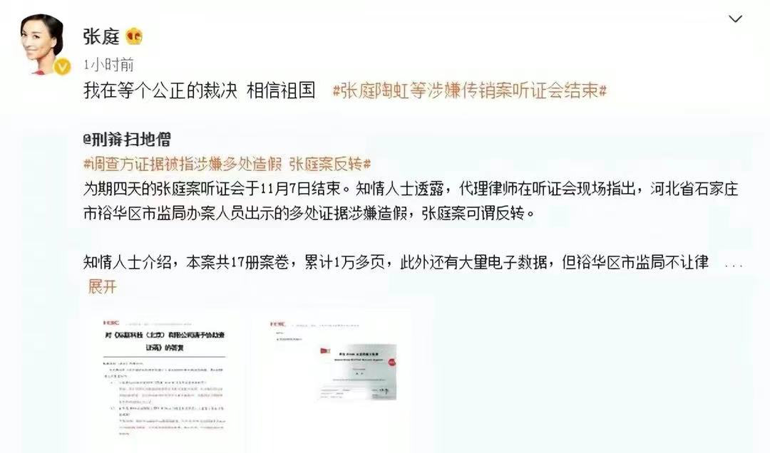 近日,張庭在個(gè)人微博“喊冤”:自己“在等個(gè)公正的裁決”。