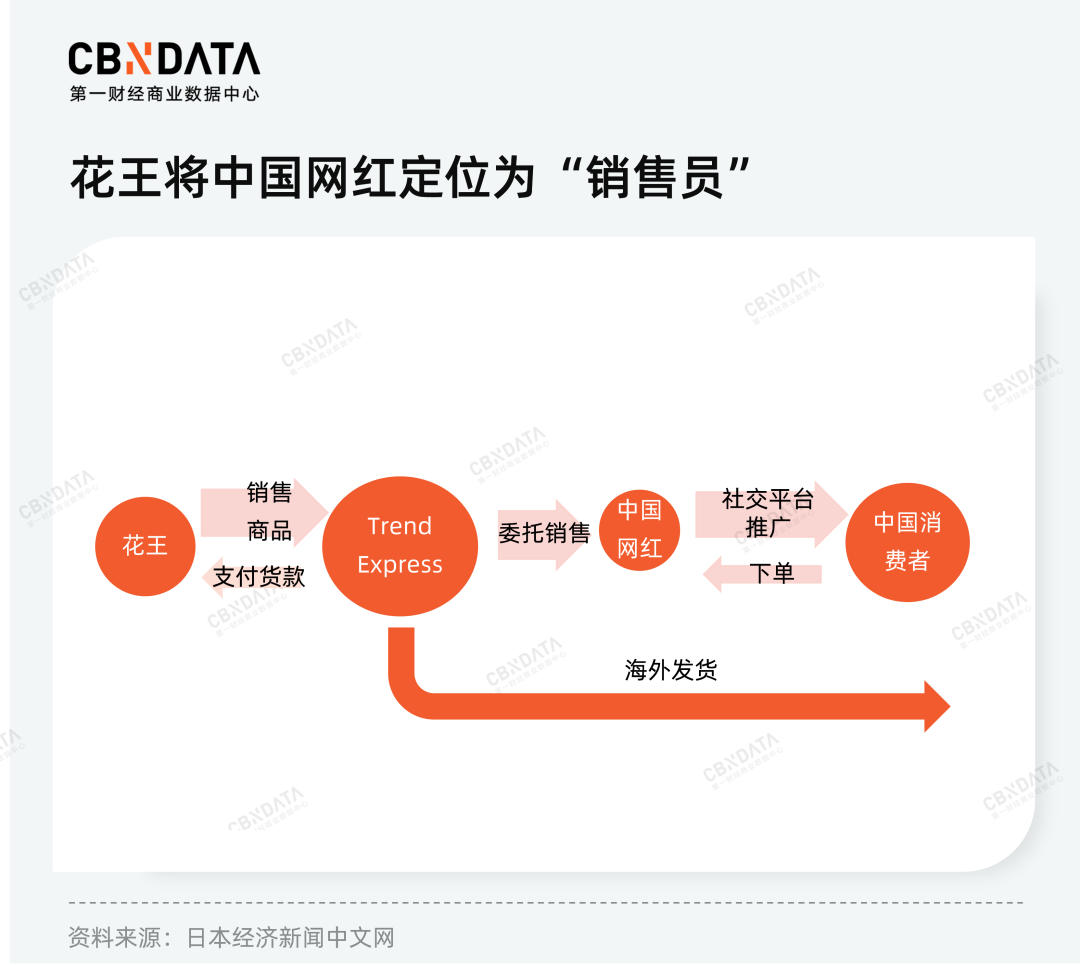 據(jù)日本經(jīng)濟新聞網(wǎng)報道,花王的“網(wǎng)紅”業(yè)務目前交由日本跨境電商服務機構(gòu)Trend Express管理。具體來說,花王向Trend Express公司銷售一定量的商品,此時花王可以獲得一筆銷售收入,Trend Express負責管理庫存。網(wǎng)紅接單后,Trend Express向中國消費者發(fā)貨。Trend Express和網(wǎng)紅分別抽取一定的傭金。網(wǎng)紅可以隨意對花王的產(chǎn)品進行定價,但Trend Express會防止過度低廉的價格。這篇文章指出,這樣的業(yè)務模式下,利潤水平據(jù)說與商場銷售差不多。