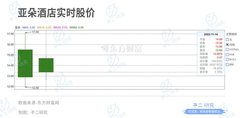上市僅僅2個(gè)交易日,截至美東時(shí)間11月14日美股收盤(pán),亞朵報(bào)收13.35美元/股,對(duì)應(yīng)市值17.4億美元(折合人民幣122.38億元);與上市首日收盤(pán)市值相比,其市值提升0.6億美元(折合人民幣4.22億元)。