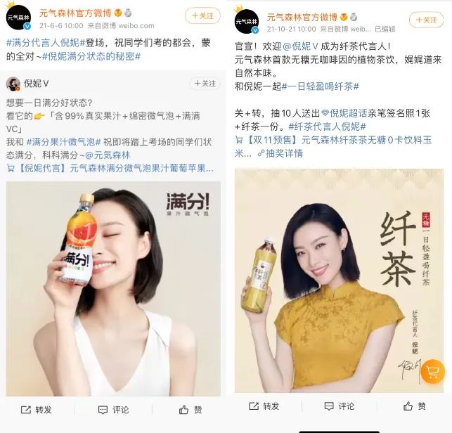 對(duì)此滿分也做出了回應(yīng)。品牌表示,倪妮本身簽約的是雙品牌代言,不存在“轉(zhuǎn)變?yōu)槔w茶代言”的問(wèn)題,根據(jù)產(chǎn)品上市時(shí)間不同,代言人的傳播時(shí)間不同,并不存在傳播資源的傾斜問(wèn)題。