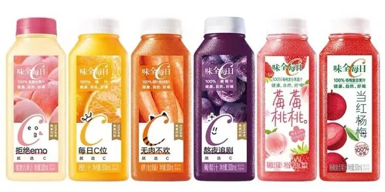 而在FC(濃縮還原果汁)100%純果汁類型上,有著味全每日C,主打低溫100%純果汁/果蔬混合汁。這個(gè)自2001年就在上海成立的100%冷藏果汁品牌,在華東地區(qū)市占率曾超過(guò)40%。
