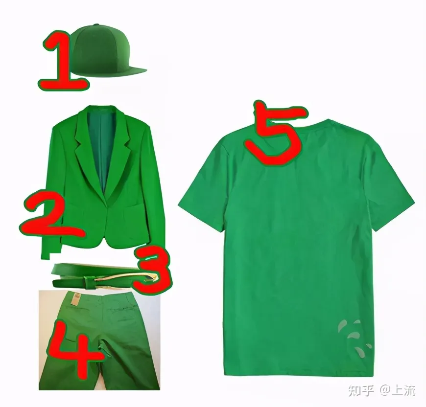 這個帶有哲學(xué)味道的名字果然鼓舞了眾人,這位博主立即收到了一組穿搭look,只是照片中從帽子、西裝、短袖、皮帶到褲子都一水兒的綠色,讓人不禁想帶上小板凳現(xiàn)場吃瓜。