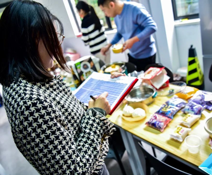 早上9點,評委們陸續(xù)抵達評審現(xiàn)場,各大零售企業(yè)開發(fā)的自有品牌早餐已排列整齊,評審將從“暖胃”開始一天的評審工作。福建冠業(yè)開發(fā)的冠惠面點正熱氣騰騰,廣東昌大昌開發(fā)的昌之選富硒烏雞蛋經(jīng)過8分鐘大火水煮正在評委手中剝殼,盒馬手作紙皮燒麥在評委舌尖跳躍,還有富含8大黑色食材的田趣黑芝麻核桃粉將補充膳食纖維和蛋白質,代表年輕人喜好的羅森原神IP聯(lián)名飯團剛加熱40秒、最后喝上一口產(chǎn)自新疆的辰頤物語純牛奶……