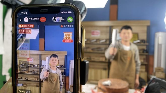 ▲ 在拼多多等平臺上的直播,讓越來越多的消費者更直觀地了解鄧家刀。楊野/攝