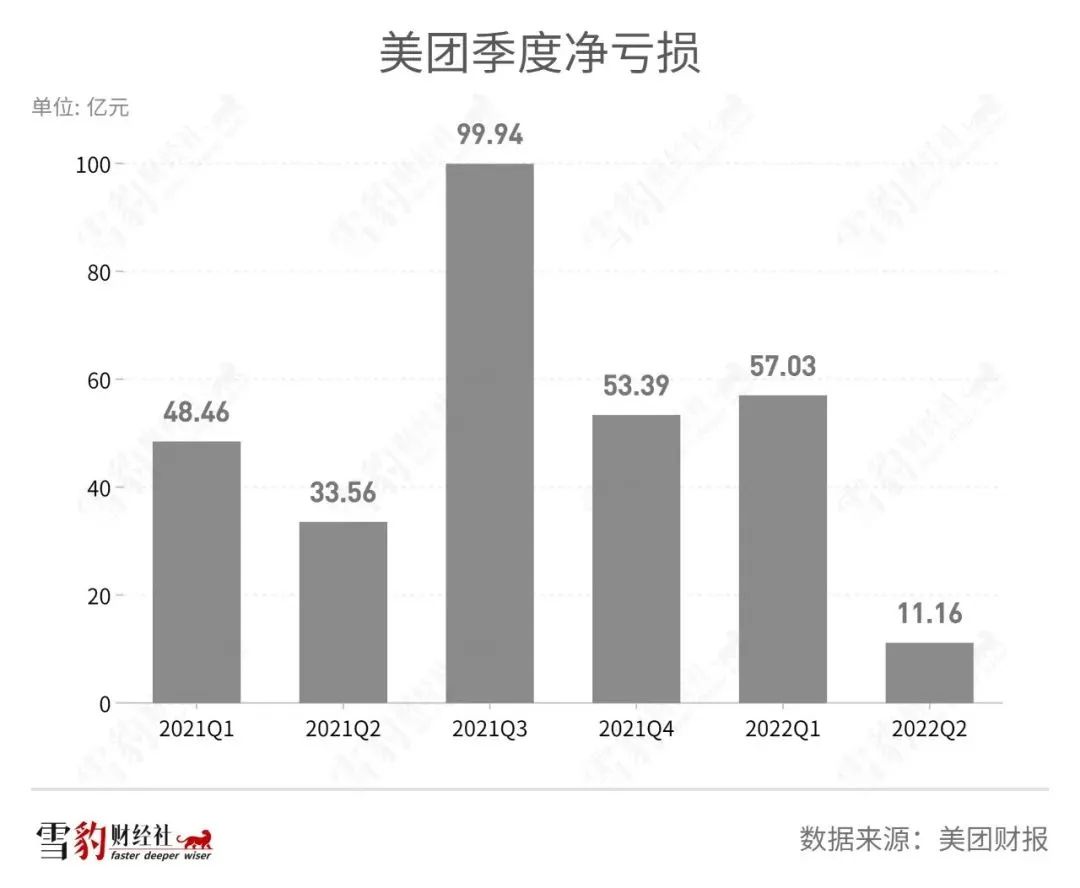 據(jù)美團(tuán)2022Q2財報數(shù)據(jù),上半年公司凈虧損11.16億元,同比收窄66.7%,經(jīng)調(diào)整后凈利潤20.58億元,同比扭虧為盈。