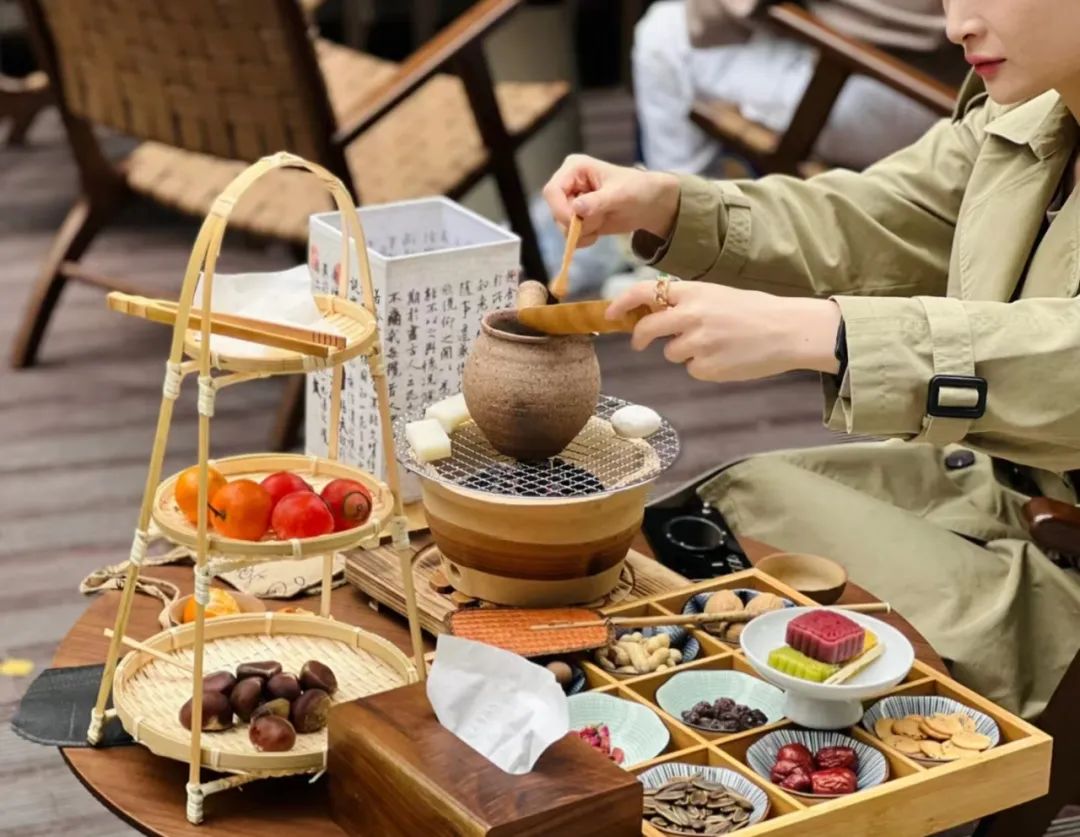 如果不說(shuō)是茶館,恐怕會(huì)被很多人以為是專供拍攝田園風(fēng)格的攝影棚,只因這份在場(chǎng)景塑造上花費(fèi)的心思,已將安然愜意的意境烘托得躍出屏幕。這份意境,也在“圍爐煮茶”的場(chǎng)景體驗(yàn)中得到放大。