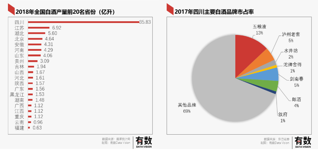 而在江小白的產(chǎn)地四川,白酒產(chǎn)量一枝獨(dú)秀吊打全國,本土白酒品牌百花齊放,競爭本就激烈。又因?yàn)槌叨似放浦,五糧液和瀘州老窖都在此地,想要謀求本土競爭難上加難。
