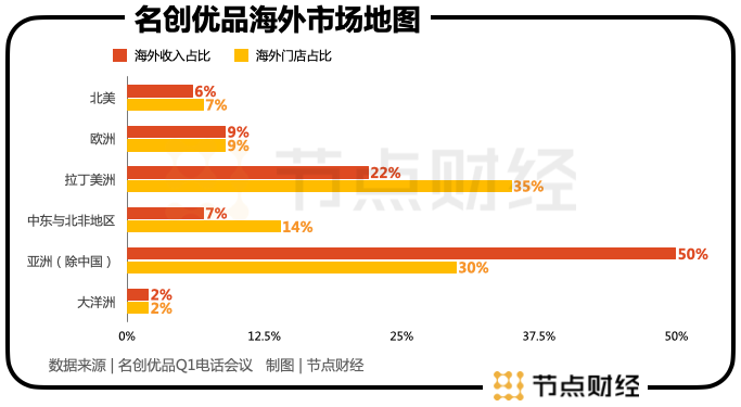 亞洲(除中國(guó)):占海外門店的50%,占海外收入的30%;